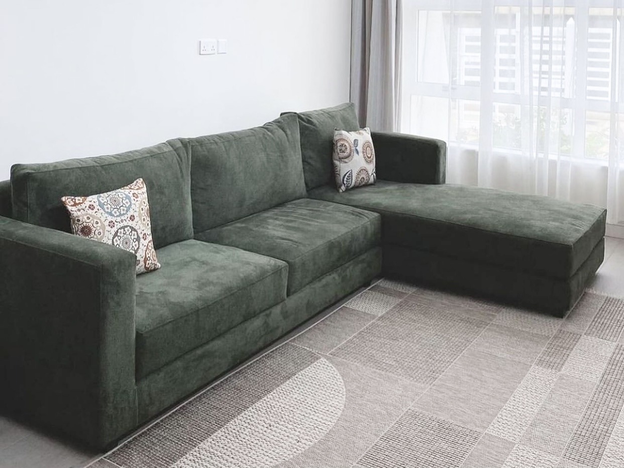 Introducing the Elara L shape 5 seater Sofa: where sophistication meets serenity in a lush shade of green. Sink into luxury with its sumptuously puffy cushions and back pillows, designed to envelop you in comfort while adding a pop of vibrant color to your living space. Experience relaxation redefined with the Elara—an exquisite fusion of style and coziness for your home sanctuary.